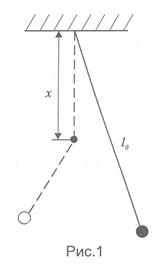 Механическим колебанием называется движение тел, которое повторяется через определенные промежутки времени. Время, за которое движение тел полностью один раз повторяется, называется периодом колебания. Математическим маятником называется материальная точка, подвешенная на невесомой нити длины $l$. В данной работе Вам необходимо экспериментально исследовать зависимость периода колебания сложного маятника, указанной на рисунке 1, в зависимости от $x$. Начальную длину маятника необходимо выбрать равным $l_0=70$ см.
