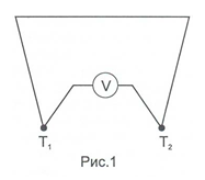 Если спаи двух разнородных металлов, образующих замкнутую цепь (такая система называется термопарой), поддерживать при различных температурах $T_1$ и $T_2$, то в цепи возникает электродвижущая сила, называемой термо ЭДС (см.Рис.1).