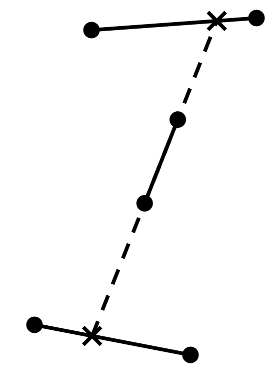 а) Возможно ли такое расположение отрезков, что каждый отрезок, продолженный в обе стороны, разбивает ровно один отрезок с каждой из сторон?