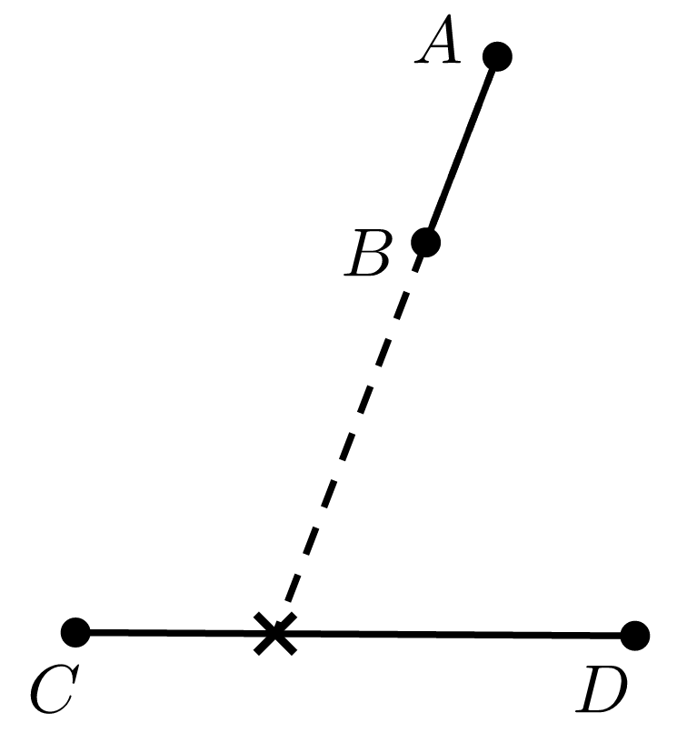 Задача №5. На плоскости расположено несколько попарно непересекающихся отрезков (отрезки не пересекаются даже в вершинах). Будем говорить, что отрезок $AB$ разбивает отрезок $CD$, если продолжение отрезка $AB$ пересекает отрезок $CD$ в некоторой точке, отличной от точек $C$ и $D$.